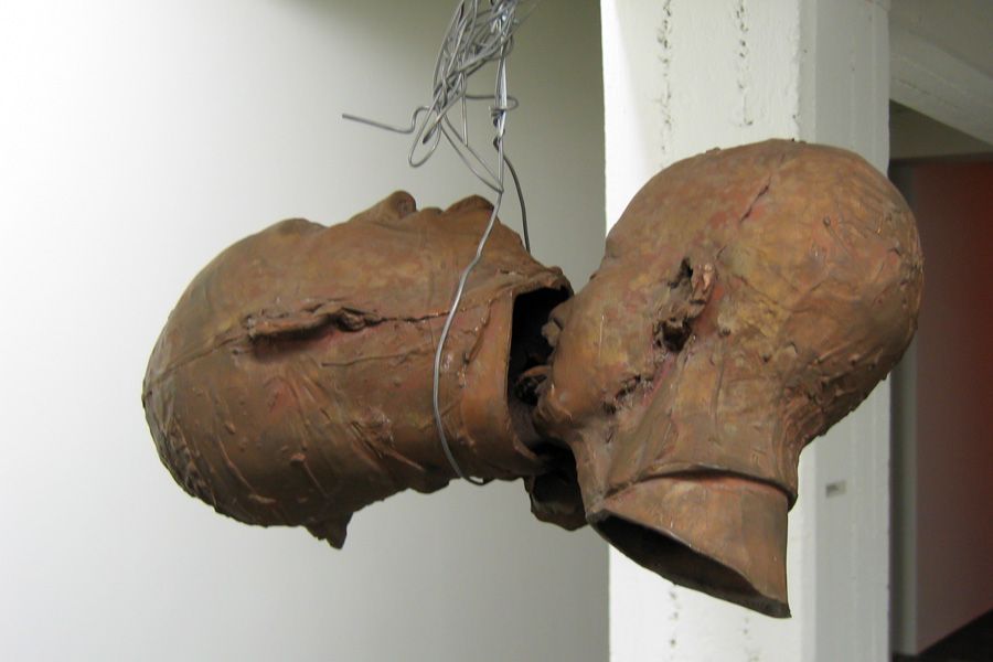 A central figure in the Flick collection is Bruce Nauman, by whom Flick owns one of the largest collections in the world. Indeed, as a Bruce Nauman retrospective the current exhibition is worth visiting in itself. In the last room of the exhibition, although this doesn't have to be the last room in each visitor's itinerary, at least it wasn't in mine, Nauman's "Model for Trench and Four Buried Passages" (1977), which consists of some half broken circles made out of plaster, his eerie "Four Pairs of Heads" (1991) and some of his video works from the late 60s, have found their perfect space. The catacombs with their low ceilings and columns in combination with the shrieking noises from the videos make these works even more intense. The same holds true for the neon sculptures and spatial installations, which occupy the right wing of the museum's main building. Here it is the number and density of the works that makes them even more oppressive. After the claustrophobic "Corridor Installation Nick Wilder Installation" (1970), a narrow corridor with two monitors at the end and a security camera above the entrance, the two opposing stands of "Indoor Outdoor Seating Arrangement" (1999) and the confrontation with "Five Pink Heads in the Corner" (1992), leaving the space almost feels like a relief.