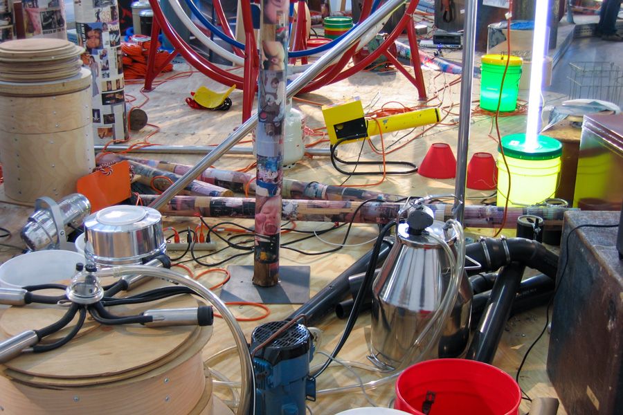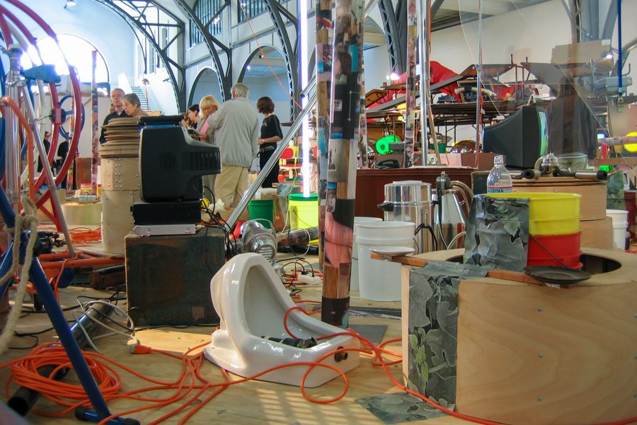 Bruce Nauman (left) and Jason Rhoades (middle and right) at the Flick Collection