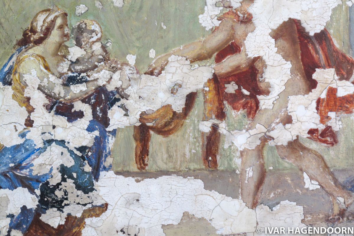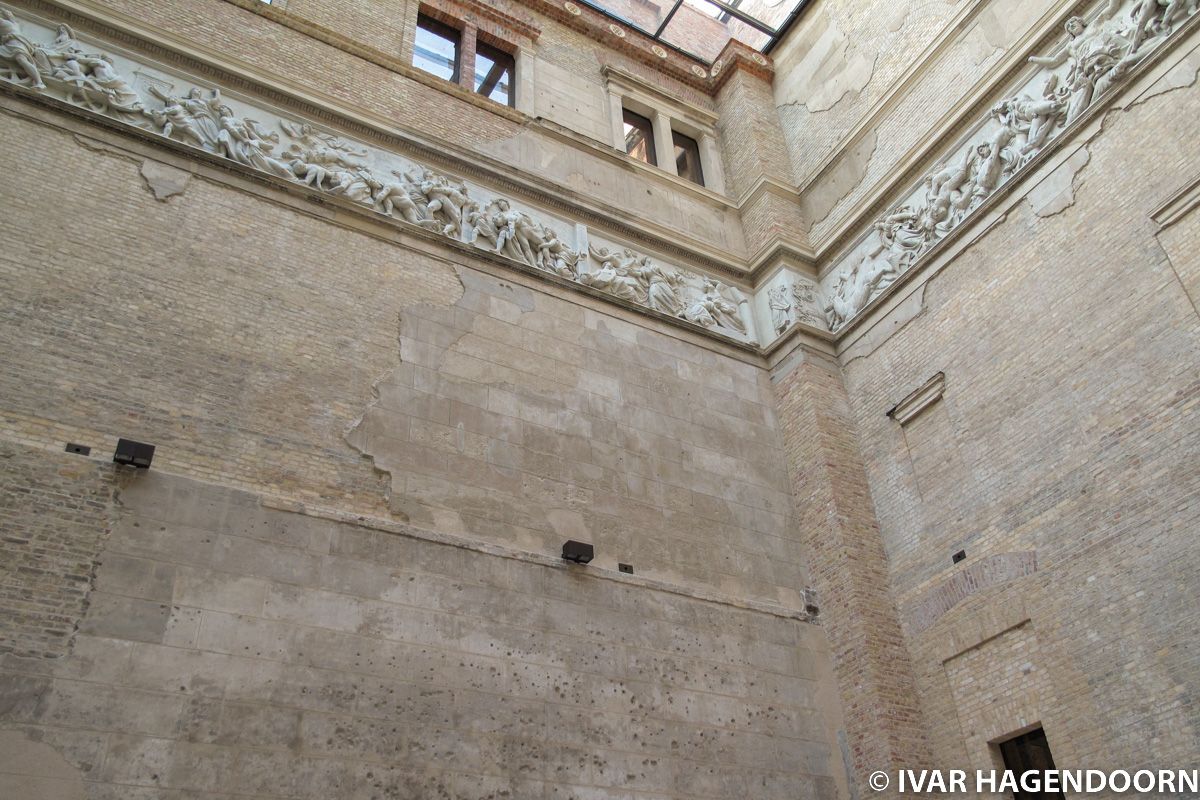 What I like about the renovation is that the scars of the war were incorporated into the design. Thus you can still see bullet holes in some of the walls. Also visible are the remains of old murals.