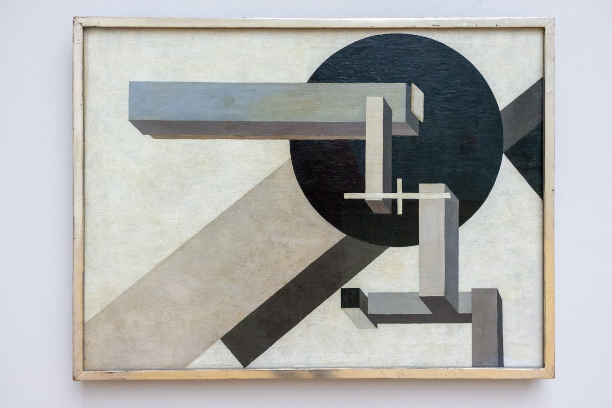 Works by El Lissitzky (left), Laszlo Moholy-Nagy (middle) and Jean Dubuffet (right)