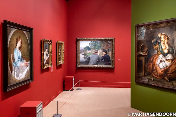 The exhibition is best known for including nude models of various ages and body types who were standing, sitting or lying in the classic poses of a painter’s model inside a glass case. But what I remember most is the original and highly theatrical exhibition design. Artworks and artifacts from the museum’s entire collection, which stretches from the Middle Ages to the present and which also includes industrial design, were arranged in an associative rather than historical manner. A black and white photo of a hand by John Coplans was displayed against the backdrop of a wall of gloves. A sculpture of a figure on a horse was presented next to a number of bicycles. Magritte’s The Red Model, a painting of boots in the shape of feet, was displayed against a backdrop of shoes above a sculpture of steel floor plates by Carl Andre. To get close to the painting you had to walk on the steel plates, which was Andre’s intention, but which most visitors are hesitant to do. The exhibition ended at the toilets with a work by Claes Oldenburgh.