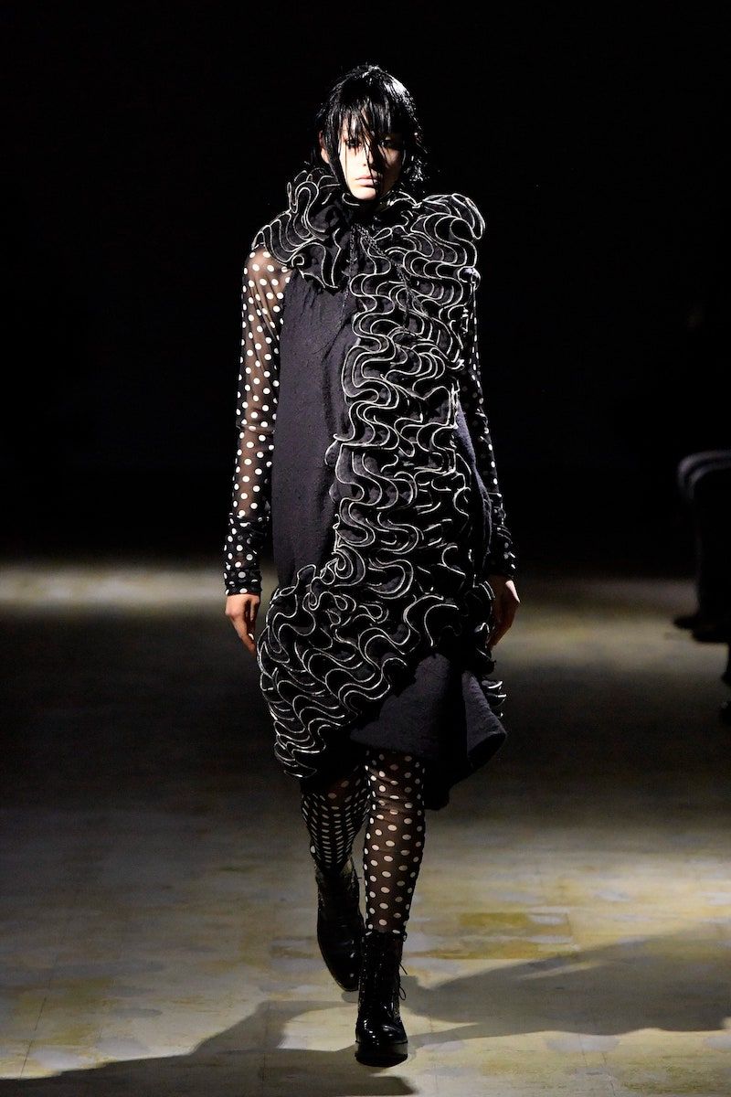 Noir Kei Ninomiya presented another fascinating imaginative collection. Some of the designs from the Comme des Garçons collection could be straight out of an adaptation of Alice in Wonderland by Robert Wilson. Just as last season Rick Owens was the only designer, or at least the only designer I surveyed, to incorporate face masks into his designs. As always I only look for designs that I find interesting or inspiring from a theatrical perspective.