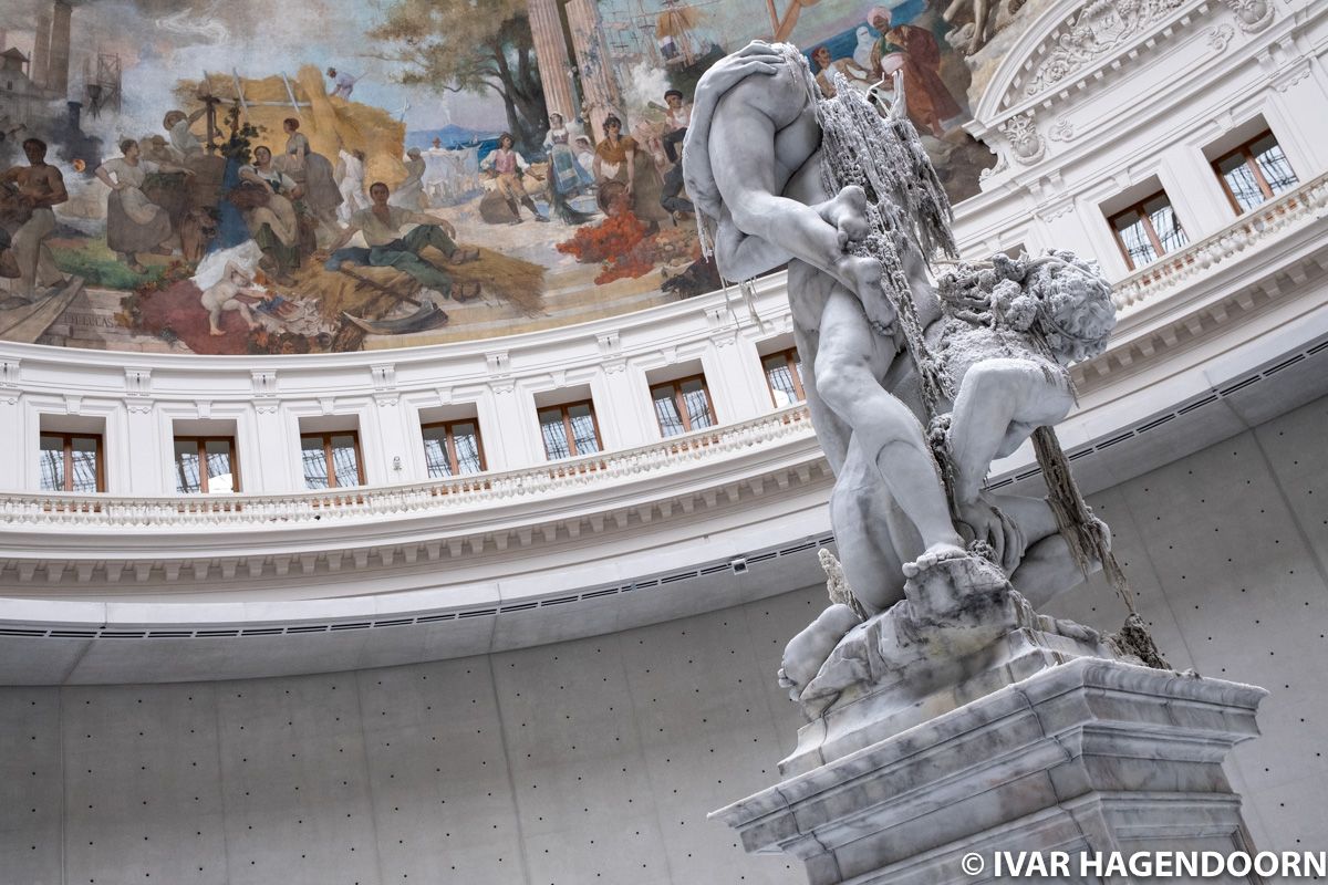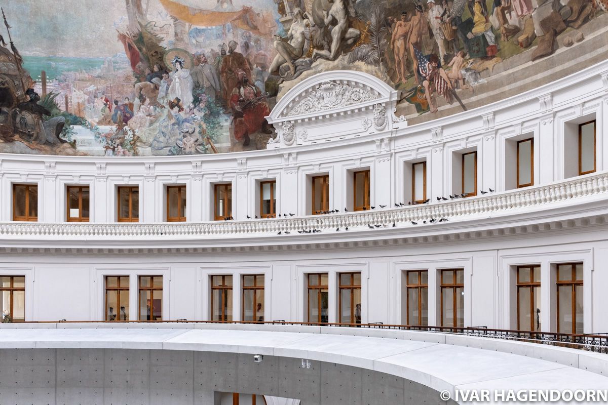 The Bourse de Commerce is a circular building, originally constructed between 1763 and 1767 as a site for the storage and trade of grain. In 1802 the wooden dome, which had been erected in 1782, was destroyed by fire. It was replaced by an iron dome. The corn exchange was closed in 1873 and in 1885 the building was assigned to the Commodities Exchange. In 2016, after years of neglect, François Pinault acquired a 50-year lease on the building and the right to transform the site into an exhibition space for contemporary art. Pinault commissioned Tadao Ando to oversee the building’s transformation.