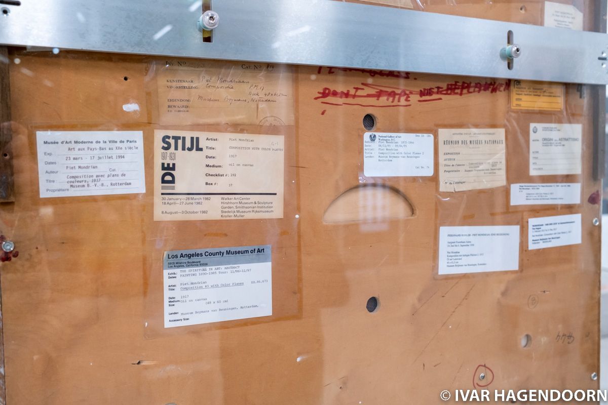 Since the Boijmans van Beuningen Museum itself is closed for renovation highlights from the collection, which includes major works by Rembrandt, Bruegel, Van Gogh, Magritte and Dali among others, are currently on show in the Depot. Instead of being hung on the wall, the paintings are displayed on free-standing glass easels, a presentation device conceived by the Italian-Brazilian architect Lina Bo Bardi (1914 - 1992). Accordingly you can walk around the painting and see both the front and the back. The back of a painting not only shows how the painting was made, it also reveals information about the painting's provenance and exhibition history in the form of stamps, stickers, labels and seals.