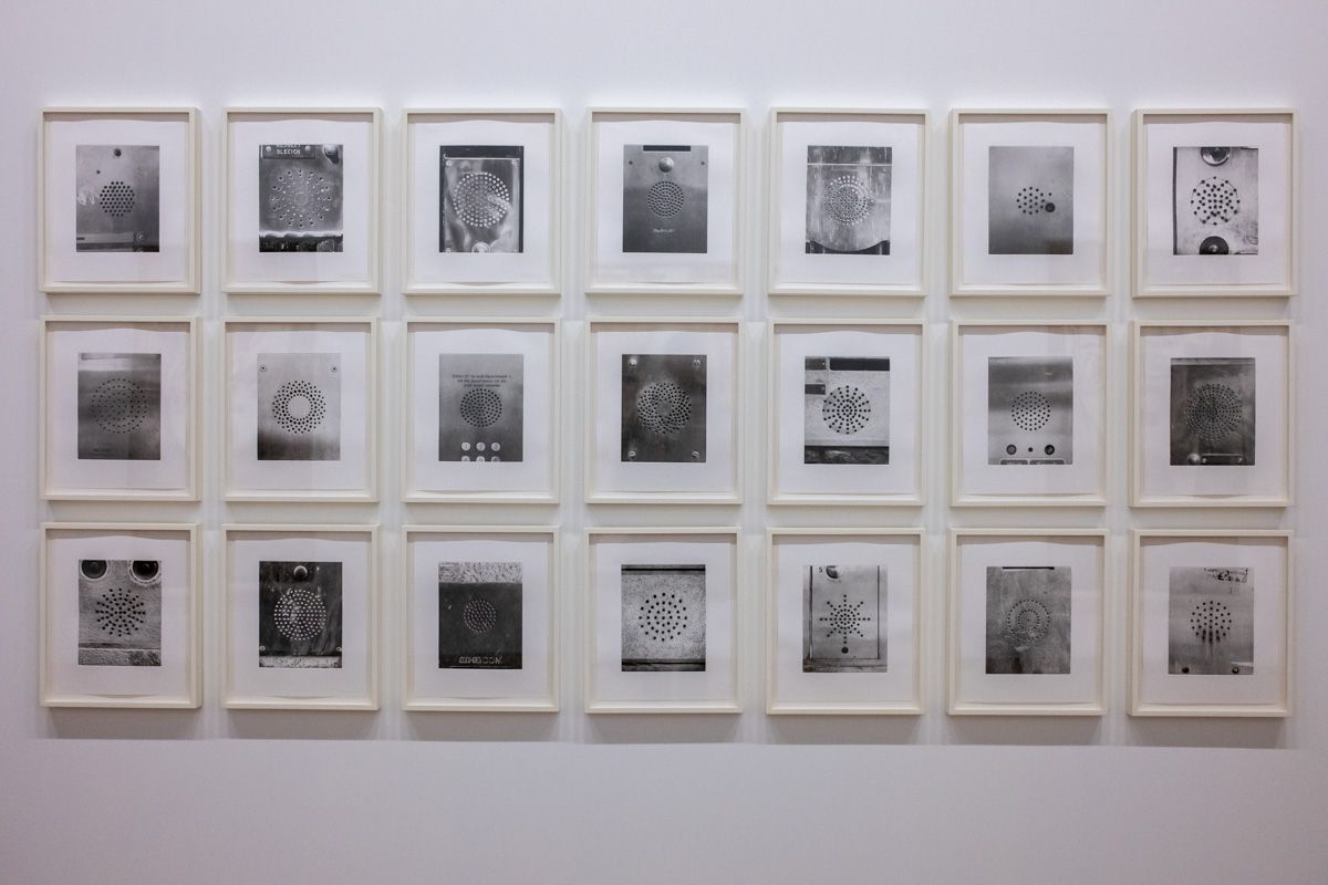 Throughout his career Marclay has explored the links between sound and the visual arts, engaging in a number of practices from performance to painting, video and installation. He created installations and collages out of vinyl records and record sleeves. An early photo collage, “Chorus II” (1988), consists of close-ups of, presumably, singing mouths. "Sound Holes" (2007), another work, which I liked a lot, consists of a series of photos of intercoms. It had never occurred to me that there is so much variation in their design.