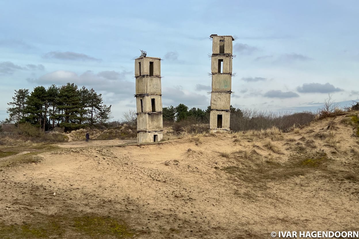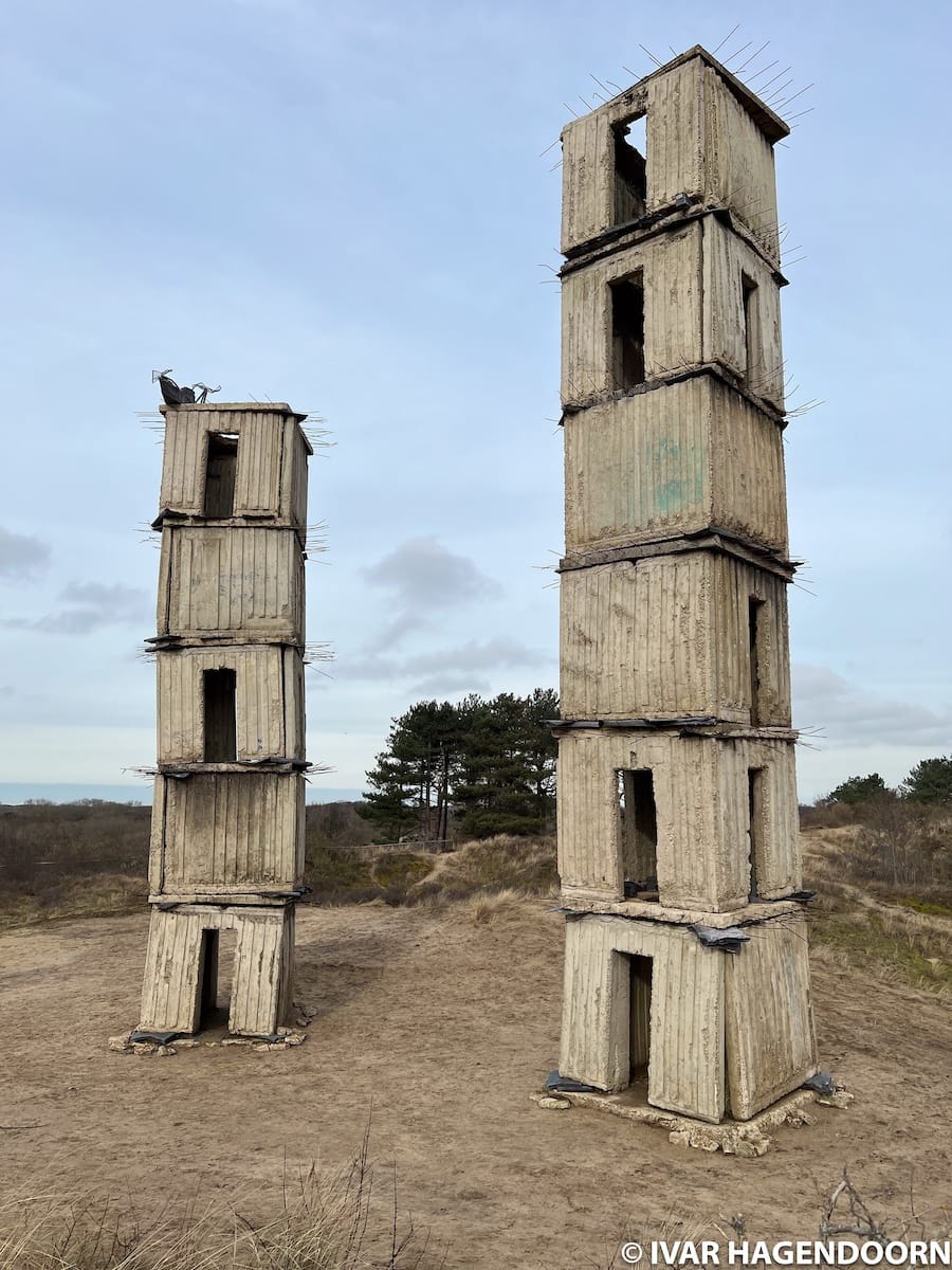 As part of the exhibition Museum Voorlinden has installed two of Anselm Kiefer’s concrete towers in the dunes behind the museum. In 2007, both towers were installed in the courtyard of the Royal Academy in London, where they looked out of place, but here they fit perfectly. They also reminded me of the concrete bunkers from the Second World War that can still be found along the coast of the Netherlands. I hope the installation will be permanent.