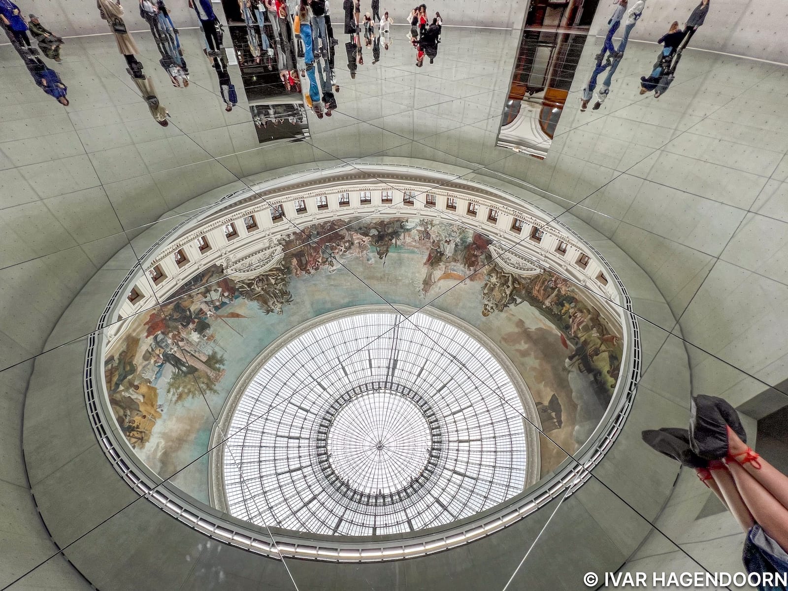 For Le monde comme il va the Korean artist Kimsooja has covered the floor of the rotunda of the Bourse de Commerce with mirrors, turning its magnificent glass dome into a reflective abyss, thereby making it one of the most Instagrammable spots in Paris. The studio, at the lower ground floor, presents another work by Kimsooja, "A Needle Woman" (1999-2000), which shows Kimsooja filmed from behind standing in the middle of a busy street in Tokyo, Shanghai, Delhi and New York. I remember being mesmerized when I first saw it at the 2005 Venice Biennale and I enjoyed seeing it again.
