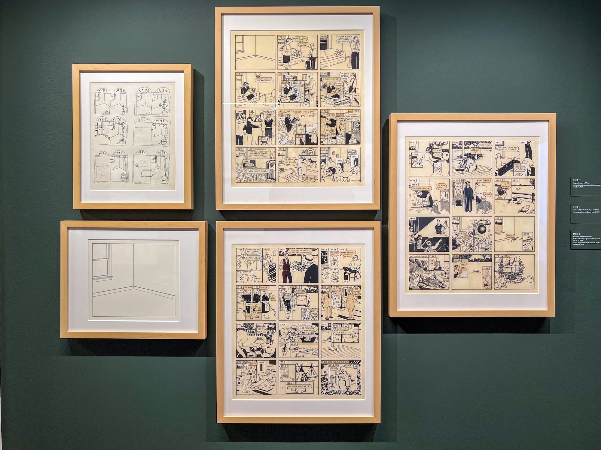 On my way to the Kunstmuseum Basel | Gegenwart I came across a poster for an exhibition by Richard McGuire at the Cartoonmuseum Basel. The name sounded vaguely familiar, but it didn’t quite register, until it suddenly dawned on me. Richard McGuire is the author of the celebrated graphic novel Here. Perhaps rather stupidly it hadn’t occurred to me that, of course, Richard McGuire has done a lot more besides Here and that, if I enjoyed Here, I would probably like his other work as well. And so I rushed to the Cartoonmuseum, happy to squeeze it into my busy schedule.