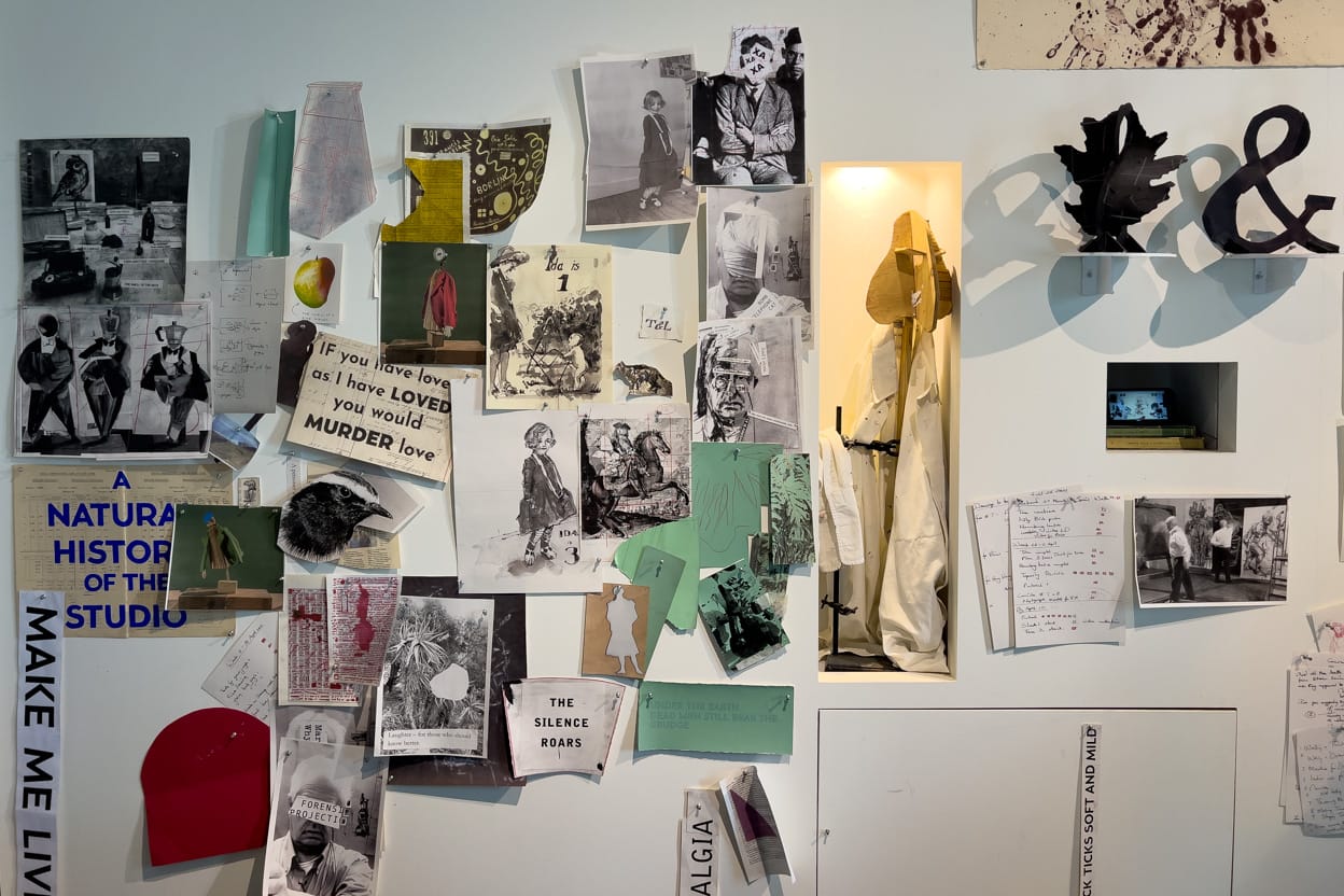 Filming of the series began during the first lockdown of the COVID-19 pandemic in Kentridge’s Johannesburg studio and was completed in 2023. The Venice exhibition partially recreates Kentridge’s studio and includes some of the sketches and props seen in the videos.