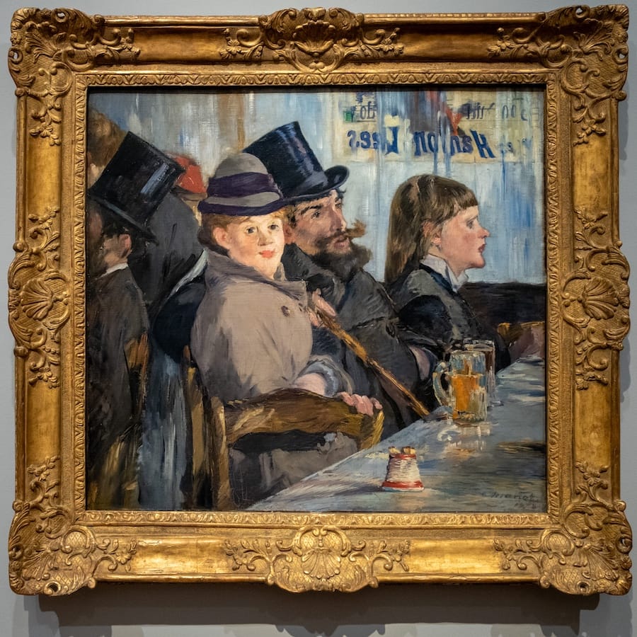 One of the highlights of the exhibition is “La Débâcle” (The Break-up of Ice on the Seine) (1880-81) by Claude Monet. The ice floes and the poplars are painted in almost abstract brushstrokes. It is a beautiful rendition of a tranquil winter’s day in the country. Another highlight is “Au Café” (1878) by Édouard Manet. In 1877, Manet began work on a large painting of the interior of the Café de Reichshoffen in Paris. Dissatisfied with the composition he cut the canvas in two and reworked both halves. The left side became “Au Café” and was eventually purchased by Oskar Reinhart, the right side became “Corner of a Café-Concert” and was acquired by the National Gallery with funds provided by Samuel Courtauld. It would have been nice if the Courtauld Gallery had borrowed it for the occasion so that both paintings could be viewed side by side. It so happened that I had just seen it at the National Gallery and had taken a snapshot and bought the postcard, which was a happy coincidence.