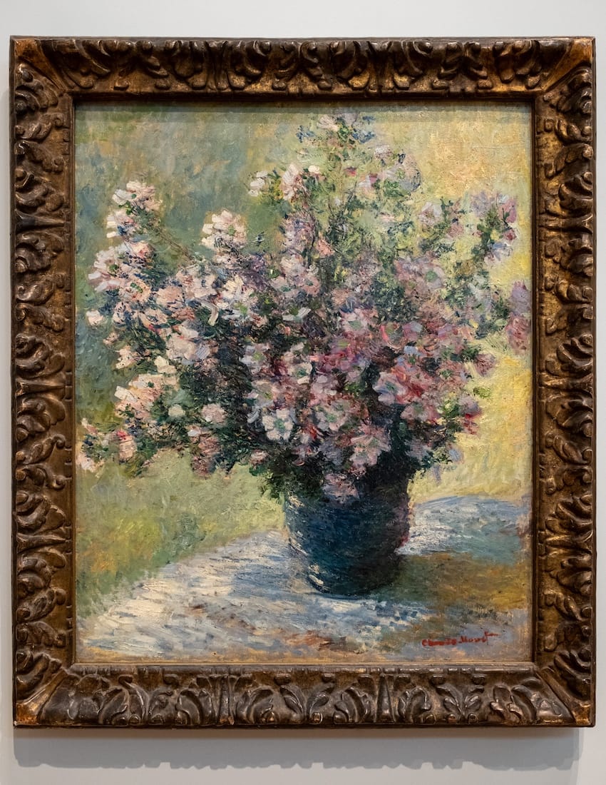 One of the highlights is “A Bar at the Folies-Bergère” (1882) by Édouard Manet. I also liked a painting of a bouquet of mallows by Monet, which he actually began in the early 1880s, but having set it aside, only finished around 1920. I always enjoy seeing how a bouquet of flowers emerges from what look like random brushstrokes from up close.