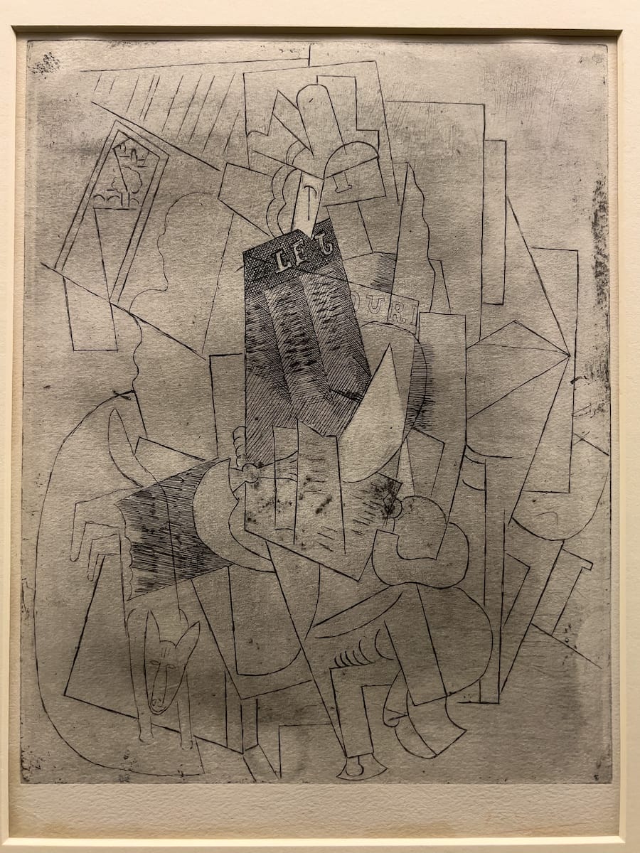 It is always a pleasure to visit a Picasso exhibition: he is such a prolific artist. The exhibition is chronologically organized starting with images from 1904 and ending with a series of variations on the theme of Raphael and La Fornarina from the late 1960s. Picasso experimented with a variety of printmaking techniques, from etchings and lithographs to linocuts and aquatints. Stylistically, Picasso veered from classicism to cubism and surrealism and back. I always find it interesting to see that even at his most cubist, Picasso’s images are never fully abstract, they always contain some recognizable details. And if you look closely you can even begin to recognize the composition. Picasso’s illustrations for an edition of Honoré de Balzac’s The Unknown Masterpiece are a perfect showcase for his artistic genius (middle above). The novel tells the story of a painter, who spends 10 years working on a potential masterpiece only to destroy it in a confused mass of lines upon finding the perfect model. Picasso would return to the theme throughout his life.
