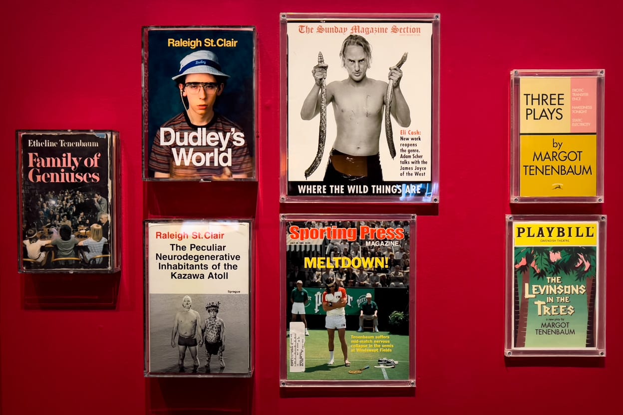The exhibition is a treasure trove for Wes Anderson fans. I enjoyed seeing the fictional covers for The French Dispatch and the equally fictional books and magazines from The Royal Tenenbaums, The Life Aquatic with Steve Zissou and Moonrise Kingdom. There are storyboards, preparatory sketches and models. The exhibition is chronologically organized and also includes excerpts from each film.