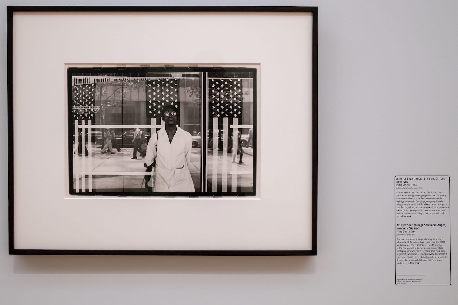 The exhibition opens with Ming Smith's 1976 portrait "America Seen Through Stars and Stripes", which also serves as a billboard for the exhibition: a powerful image of a Black man in reflective sunglasses against an American flag that sets the tone for this comprehensive exploration of American identity. Drawing from the museum's collection of 7,000 American photographs plus targeted loans, the exhibition examines how photography has captured the complex reality of American life, from its aspirations to its contradictions.