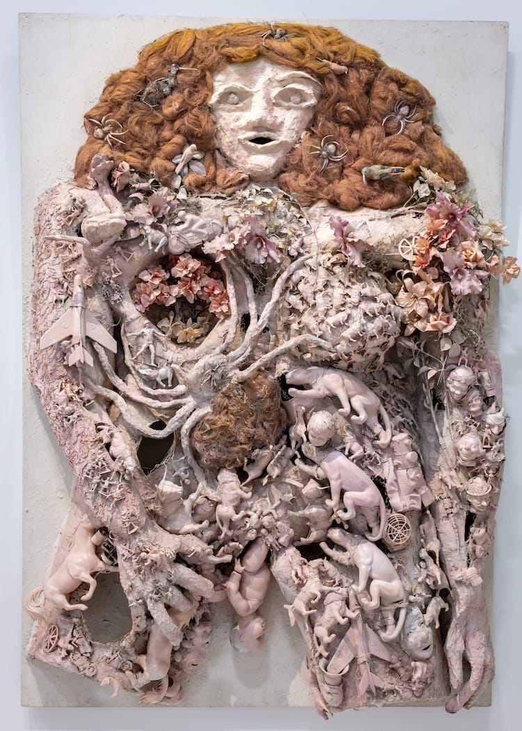 While Niki de Saint Phalle is best known for her Nanas, exuberant, large-scale sculptures of women in motion, running, leaping, and dancing, her earlier work carries a darker psychological weight. Having suffered sexual abuse by her father as a child and a severe depressive episode in her early twenties that led to psychiatric hospitalization, Saint Phalle would later credit art with saving her life. In the early 1960s, she commanded attention with her "Tirs" or Shooting Paintings, assemblages mounted on wooden boards incorporating fabric scraps, children's toys, and paint-filled plastic bags, which she then fired upon with a rifle. You don’t have to be a psychoanalyst to understand the psychological dimension of these works.
