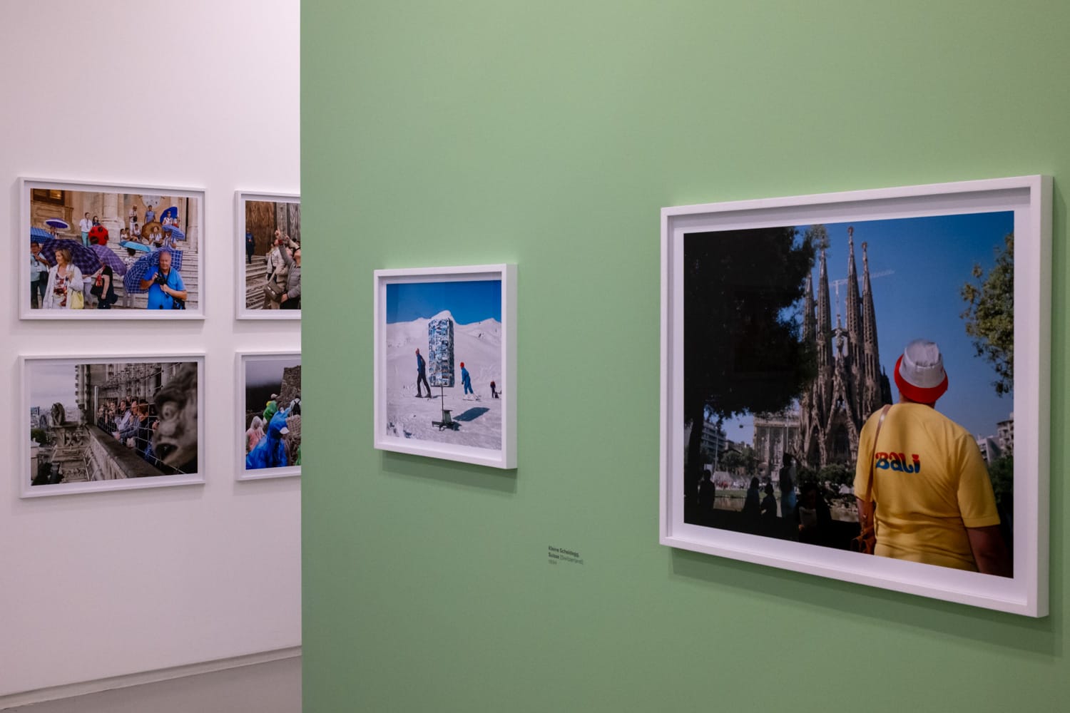 The third section shrinks the globe under the boot of overtourism: tourists are shown propping up the tower of Pisa, asleep at an airport, photographing the pyramids at Giza and in Las Vegas and joining the crowds in Venice. Parr lamented that compulsive documentation had eroded genuine observation and his framing keeps puncturing the postcard to expose what lies beneath.