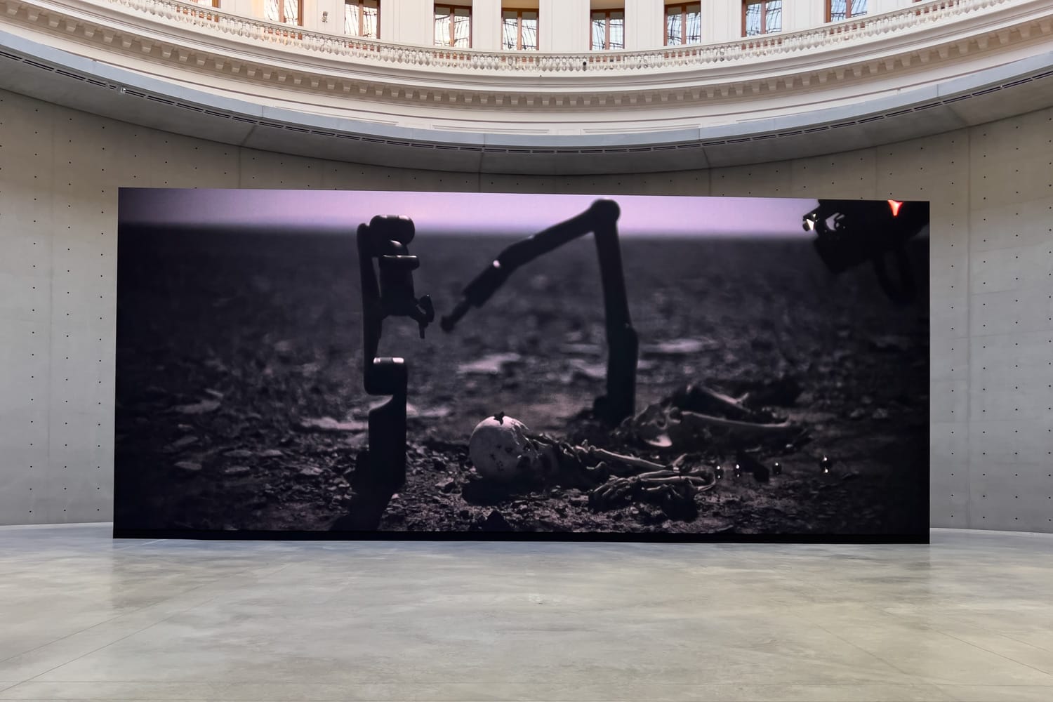I greatly enjoyed seeing Pierre Huyghe's monumental film "Camata" again, which was one of the highlights of Liminal, his solo show at the Punta della Dogana during the 2024 Venice Biennale and which now occupies the heart of the Bourse de Commerce's rotunda. Shot in Chile's Atacama Desert, it shows a couple of robot arms slowly probing a human skeleton. It is a contemporary vanitas suspended between archaic ritual and science fiction. I was once again completely mesmerized. I stayed past closing time until the guards kindly requested me to leave. I got the impression that it is a different edit, but I could be mistaken. My sole criticism is that it doesn’t use the architecture of the rotunda, like some previous installations.