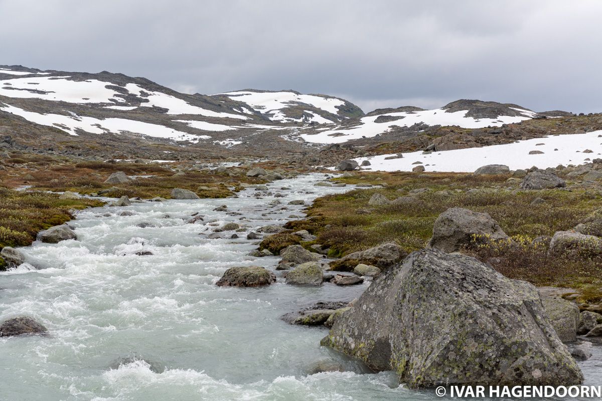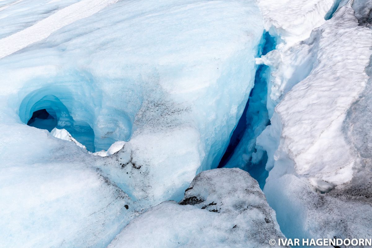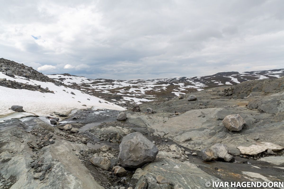 In 2016 I noticed some people on top of the Bøverbreen glacier in Jotunheimen National Park near the Krossbu Turisthytte. I made a mental note (read: bookmark) and in 2022 I booked a guided tour to Bøverbreen. There had been a lot of late season snow so the crevasses were still filled with snow making it dangerous to get close to the crevasses near the top of the glacier. Even so, I had a great time exploring the glacier together with the guide who explained a lot about the geology and the history of the surrounding area. The Bøverbreen glacier is covered with the remains of lemmings that die when they try to cross the glacier!
