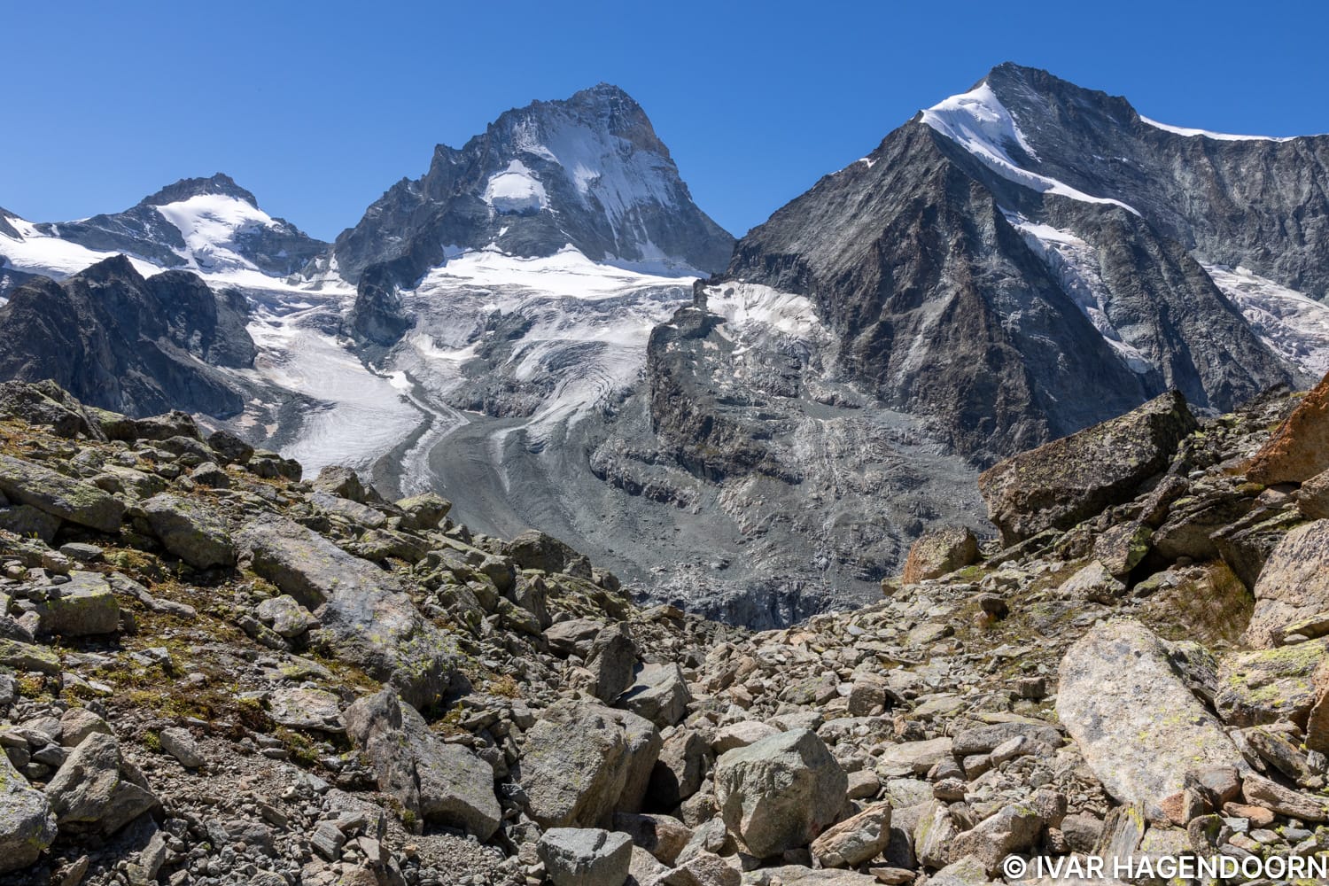 The Val d'Anniviers is often overlooked, but it is really beautiful. I stayed in Zinal, which lies at the end of the valley. It's a lot less touristy than Zermatt or Saas-Fee. The hike to the Cabane de Moiry in Grimentz, overlooking the Moiry Glacier, is really cool and relatively easy. The hike to the Cabane d'Arpitettaz is also quite nice. It partially overlaps with the Roc de la Vache trail, but if you're up to it and get an early start, you can combine both. The crown jewel is of course the hike to the Cabane du Grand Mountet, which is one of the best hikes in the Swiss Alps, and the hike to the Cabane du Tracuit, which is still on my list.