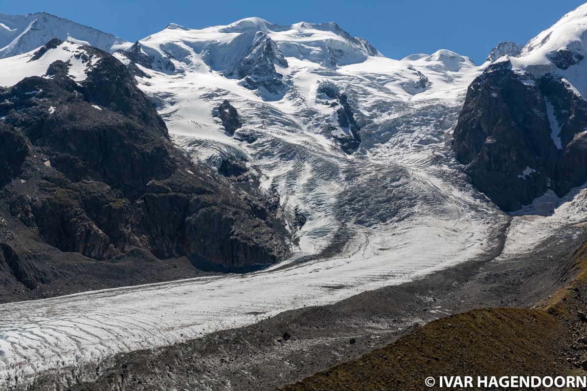 The trail from Morteratsch to the Chamanna da Boval hut is a relatively easy but wonderful hike. It offers amazing views of the Morteratsch Glacier, the Pers Glacier and the surrounding mountains. As you can tell from the photos I was lucky with the weather. The glaciers around St Moritz are at an elevation of around 3,000 meter and are therefore vulnerable to climate change. I wonder how much will remain ten years from now (= 2020).