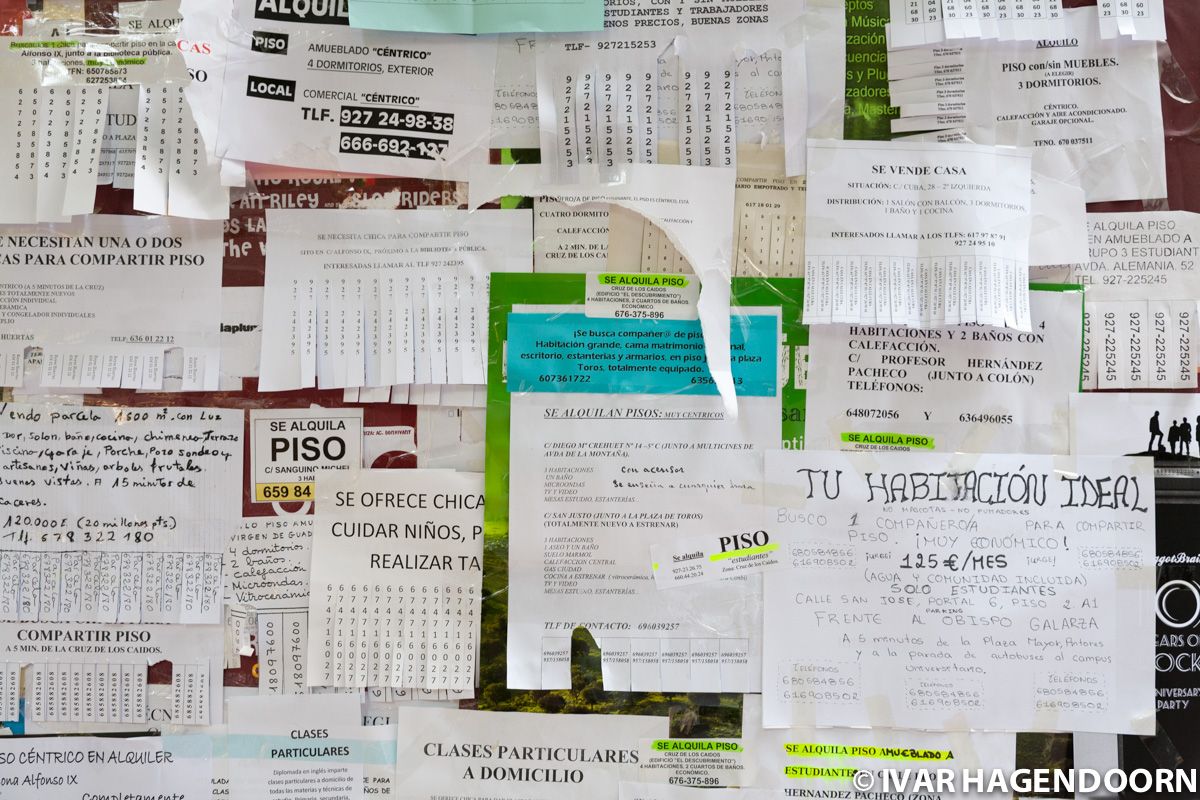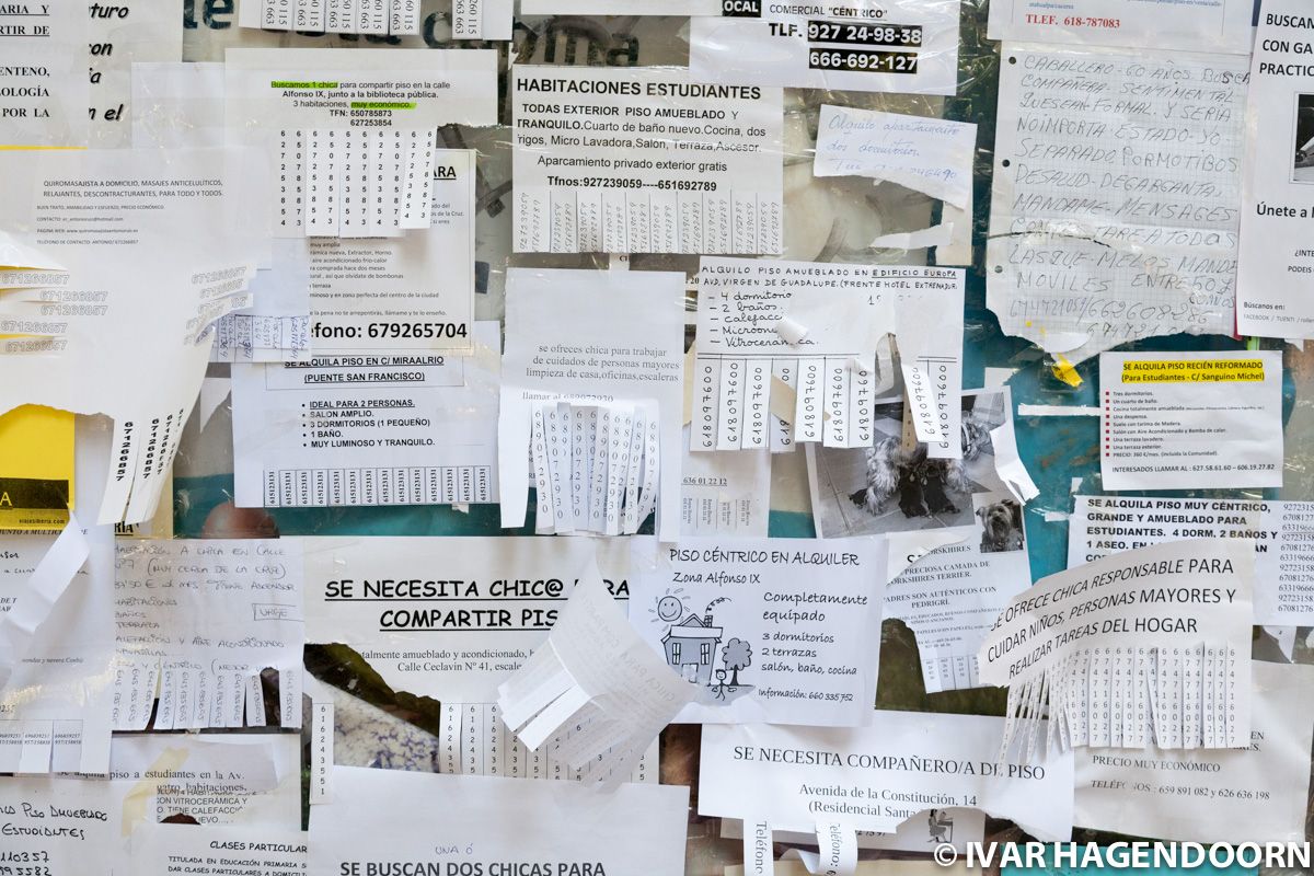 Cáceres has a university campus. I've seen the same kind of notice boards in Bologna, also a university town.