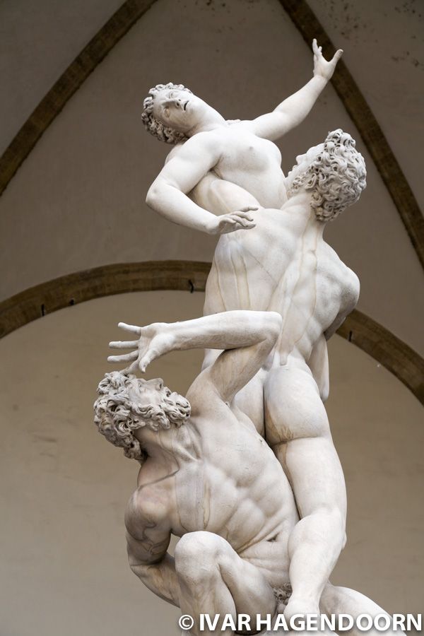 Left: Campanile di Giotto; Right: The Rape of the Sabine Women by Giambologna at the Loggia dei Lanzi
