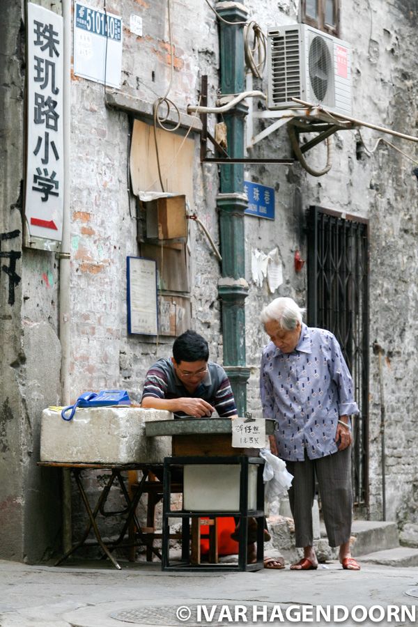 Guangzhou is the capital and most populous city of the province of Guangdong in southern China. It is part of the part of the Pearl River Delta Metropolitan Region, one of the most densely urbanized regions in the world, which also includes Shenzhen, Huizhou and, of course, Hong Kong. In November 2006 I made a short day trip to Guangzhou from Hong Kong, because I wanted to visit the old town before it would be gone for good and because I wanted to see the transformation going on in the city. Of course, that was a bit too ambitious for a day trip, but even so it was interesting to see the meaning of rapid economic growth.