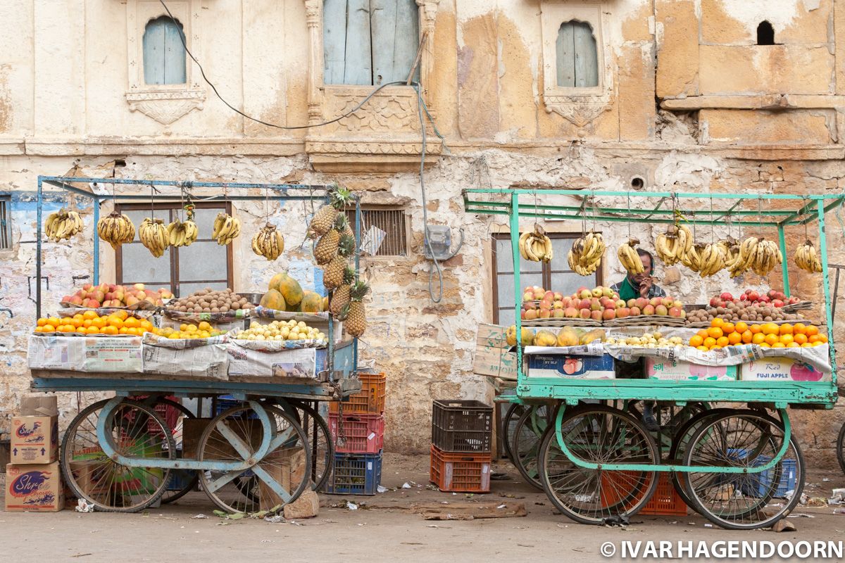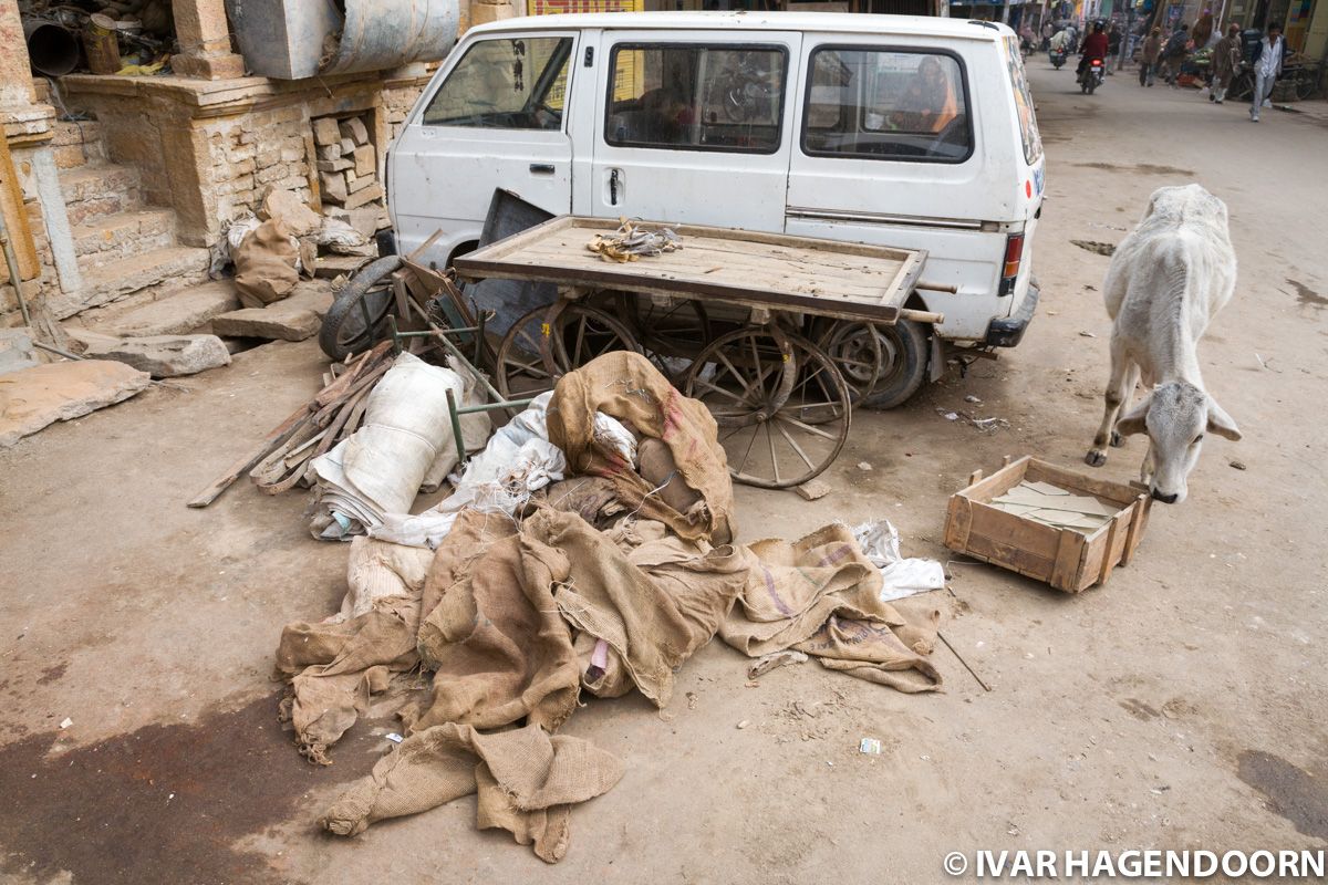 Jaisalmer, in the Indian state of Rajasthan, on the border with Pakistan, is best known for its ancient fort, which dates back to the 12 century. Whereas Jodhpur is known as the "Blue city", Jaisalmer is sometimes nicknamed the "Golden city", because of the yellow sandstone used for the fort and the town below. I was surprised to see how many people still live inside the fort. I had a bit of bad luck with the weather. I arrived on a sunny afternoon, but the next two days were cold and foggy, so I couldn't make the photos I'd been hoping for.