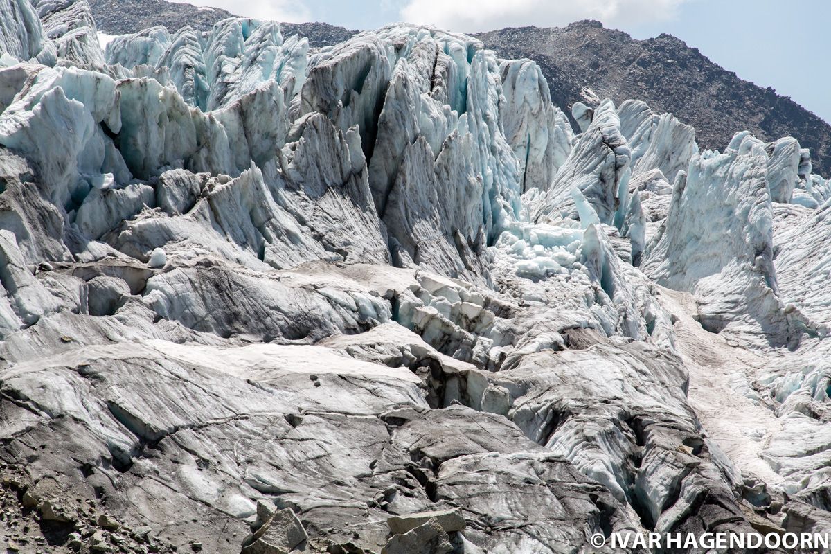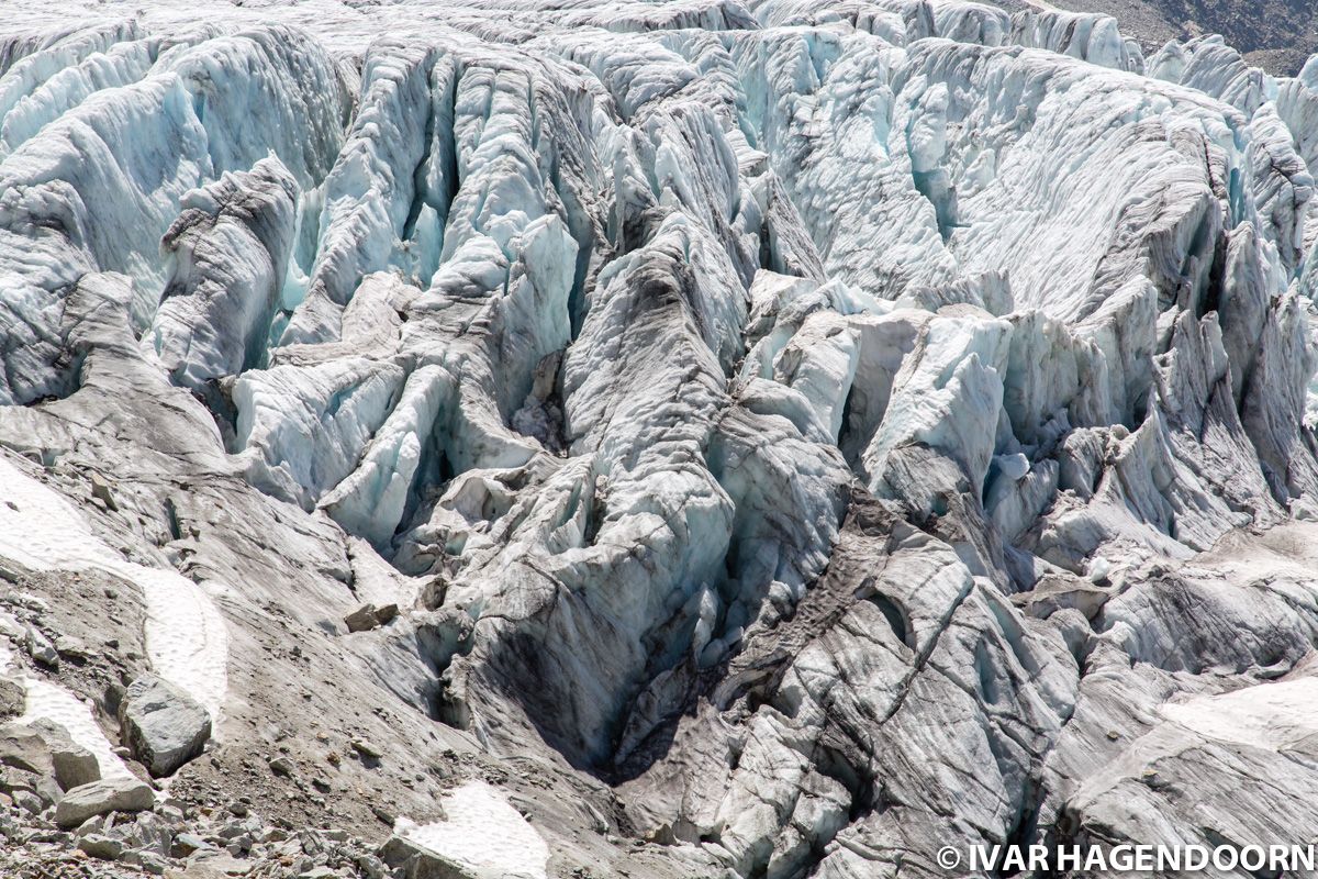 Crevasses and seracs at the foot of the Glacier du Tour