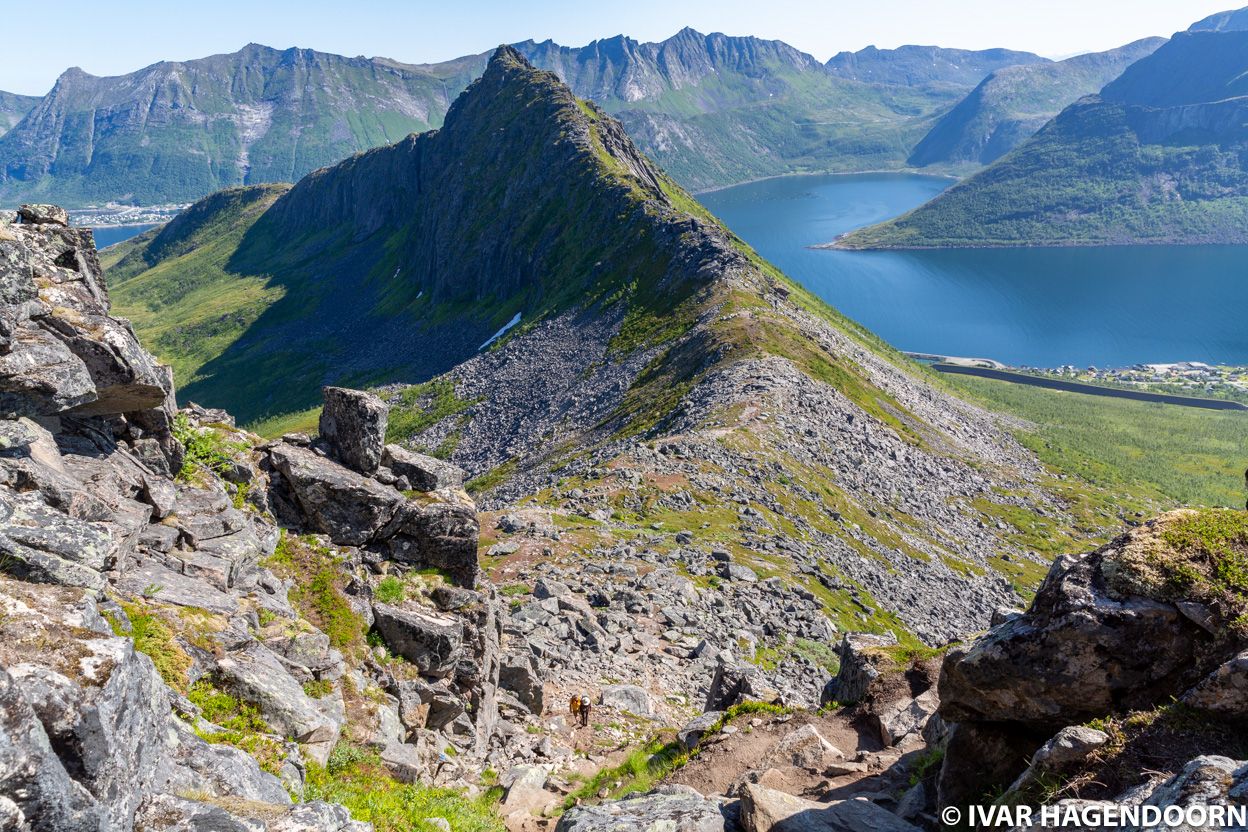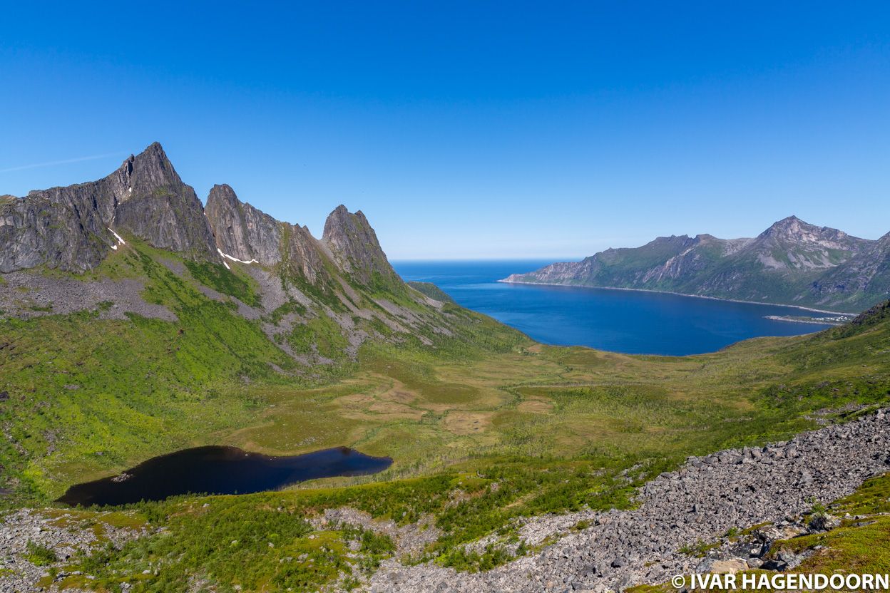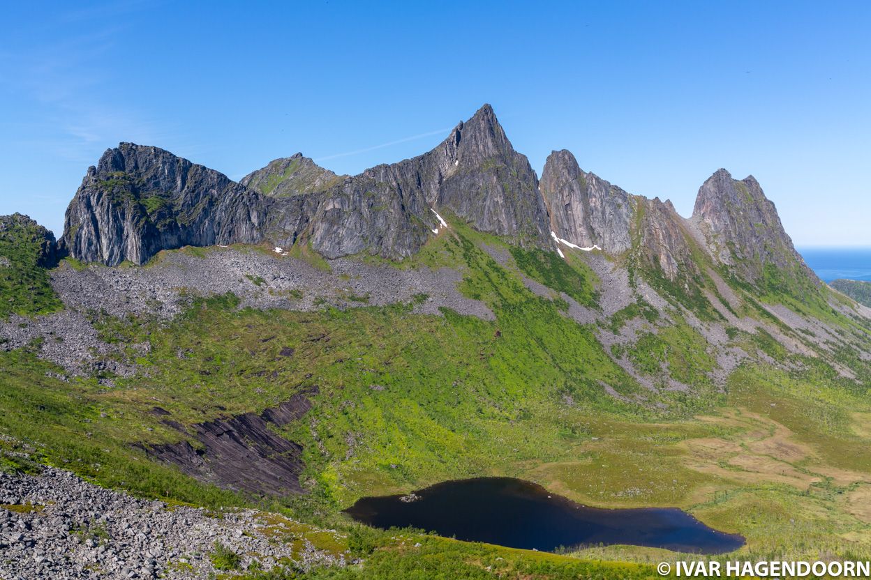 Of course, I had been hoping to make some great photos of Segla, but as I climbed Hesten, the mountain facing Segla, I realized that it was the wrong time of day. For good photos I should have taken advantage of the midnight sun and climbed Hesten late in the evening. Had I known this I would have climbed Segla itself, because it's higher than Hesten. Perhaps another time.