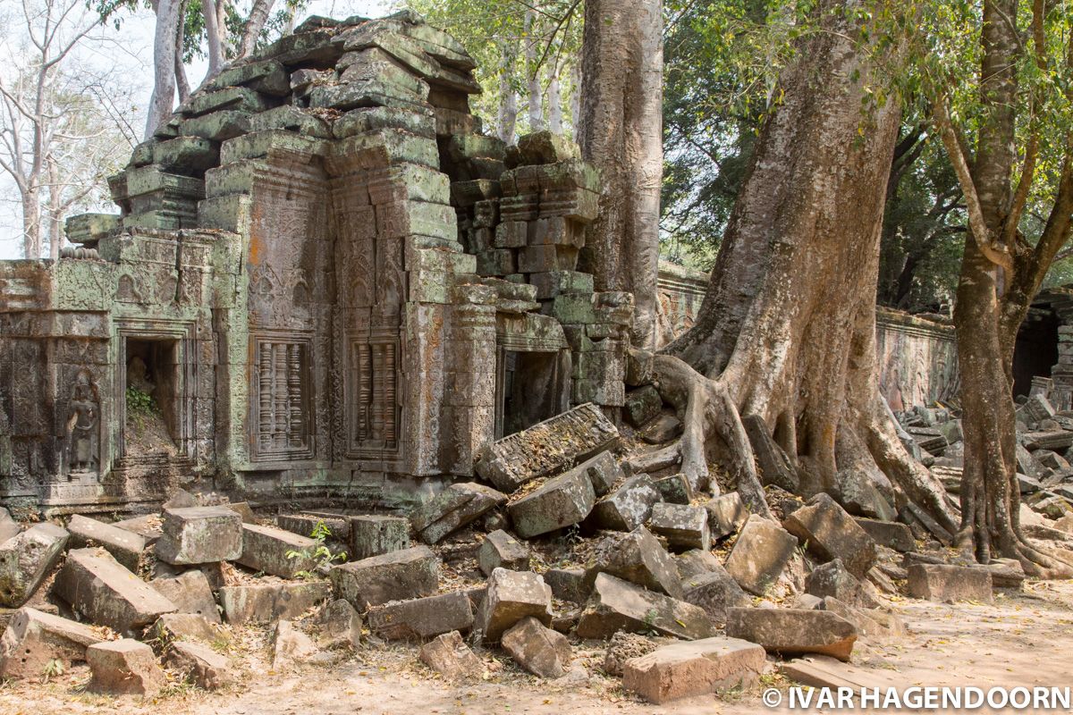 Ta Prohm is one of several temples at Angkor, built in the late 12th and early 13th centuries. It was founded by the Khmer King Jayavarman VII as a Mahayana Buddhist monastery and university. It has been left largely in the state in which it was found, with huge trees growing among the ruins. It is one of the most visited temples in the Angkor region.