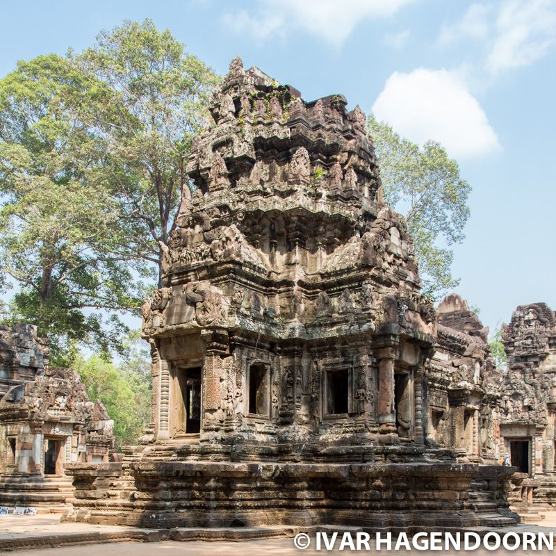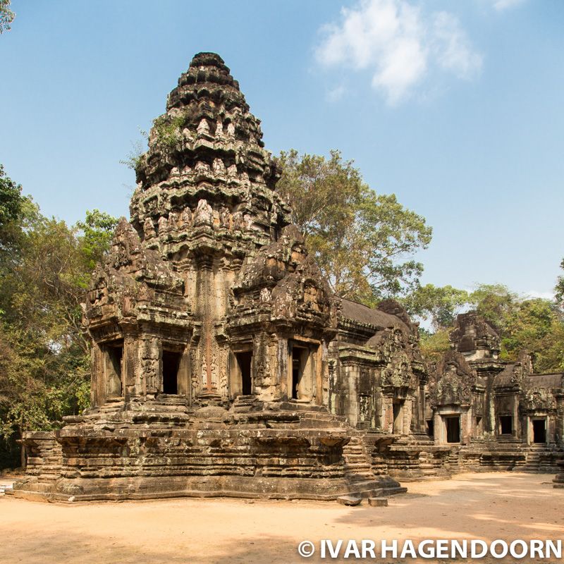 Thommanon is one of a pair of Hindu temples built during the reign of Suryavarman II (from 1113–1150), that is at the same time as Angkor Wat. Thommanon is a single-towered temple with an east-facing central sanctuary, crowned by a prasat, or tower. The temple's carvings of devatas, female divine figurines, are in excellent condition. Most visitors to Angkor appear to skip Thommanon, since I had the complex almost to myself.